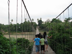 saya agak ngeri naik jembatan gantung ini. tapi sepupu-sepupu saya yang kecil-kecil ini dengan entengnya menghina-dina saya… “Kak Ira cemen, nenek-nenek aja berani kok naik jembatan ini” Ingin rasanya mencekik anak-anak kecil ini πŸ‘Ώ