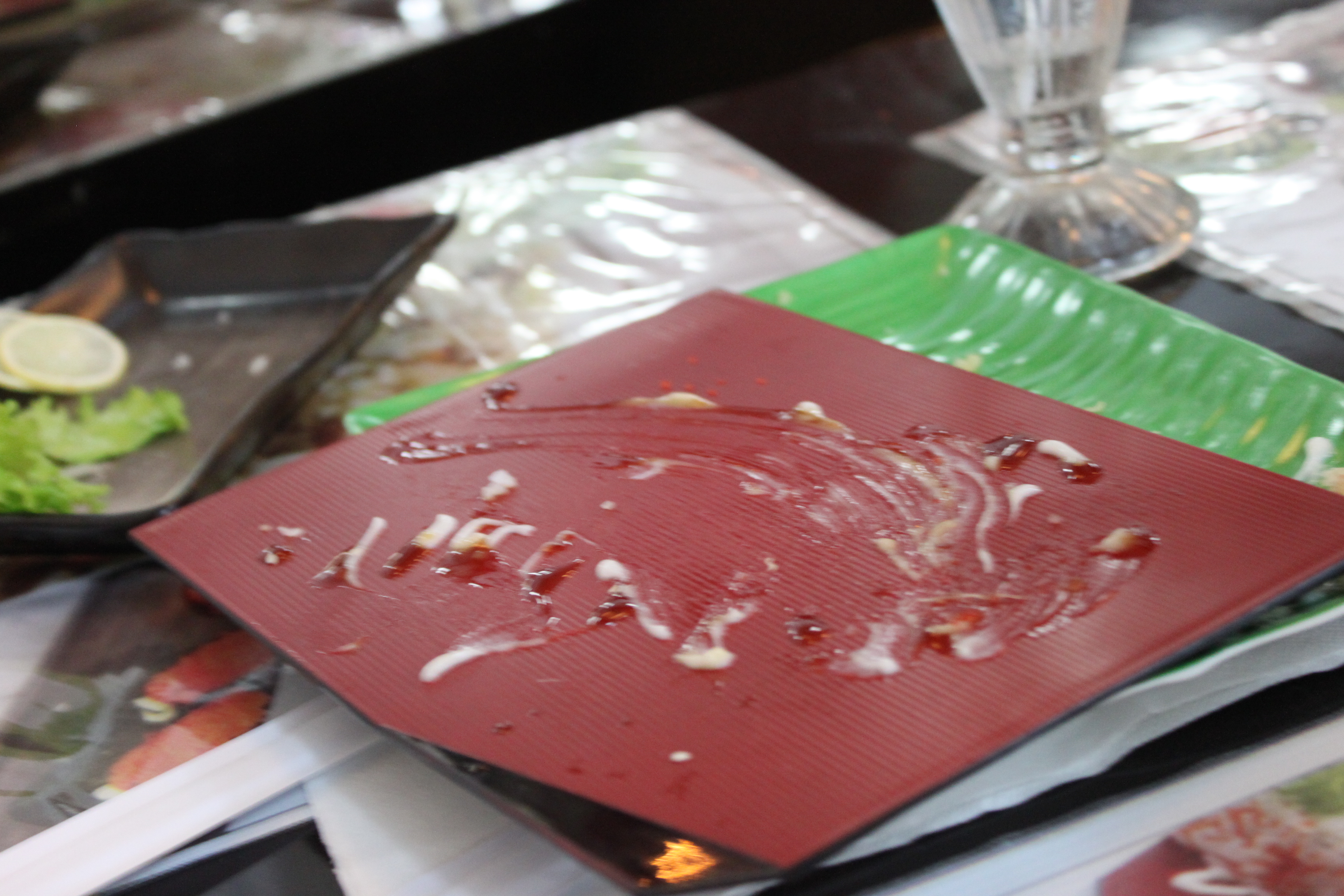 Kecap kikkoman yg dimeja kayaknya diolplos deh, soalny rada enceran….*kikkoman rada mahalaq pesen sasrimi, raw sushi, fusion sushi sm udon, nothing special…