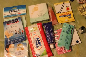 Saya juga menyimpan masker kalau-kalau saya mendadak terkena flu daripada menulari orang. ada tisue basah, plester dan betadine karena saya gampang sekali terluka. Yang tak pernah ketinggalan juga berbagai macam obat seperti obat maag, obat alergi dan obat flu. ada juga minyak cap kapak dan salonpas  gel untuk menghilangkan pegal kaki karena saya lumayan sering jalan kaki. Dan meskipun saya jarang dandan, di tas biasanya saya membawa bedak dan lipgloss meskipun jarang sekali dipakai.