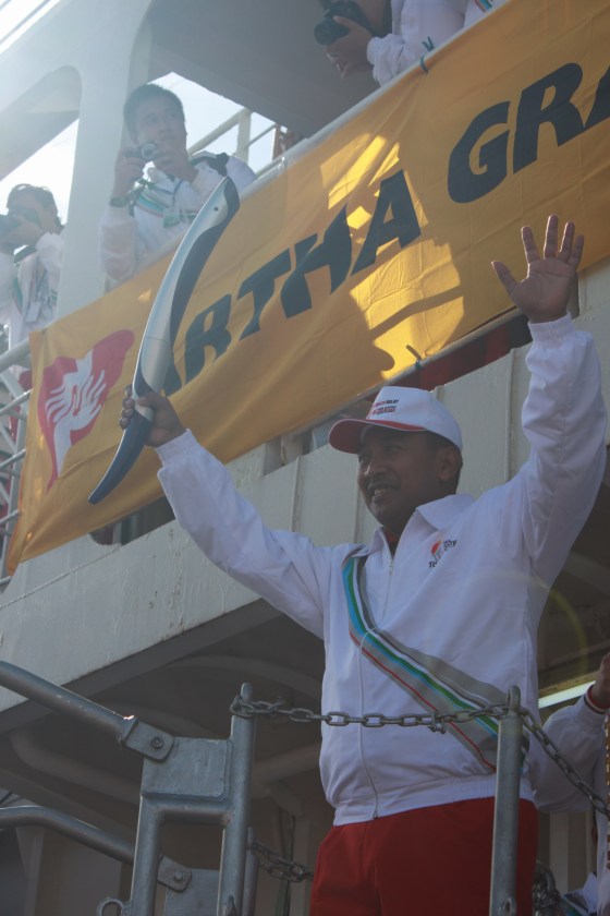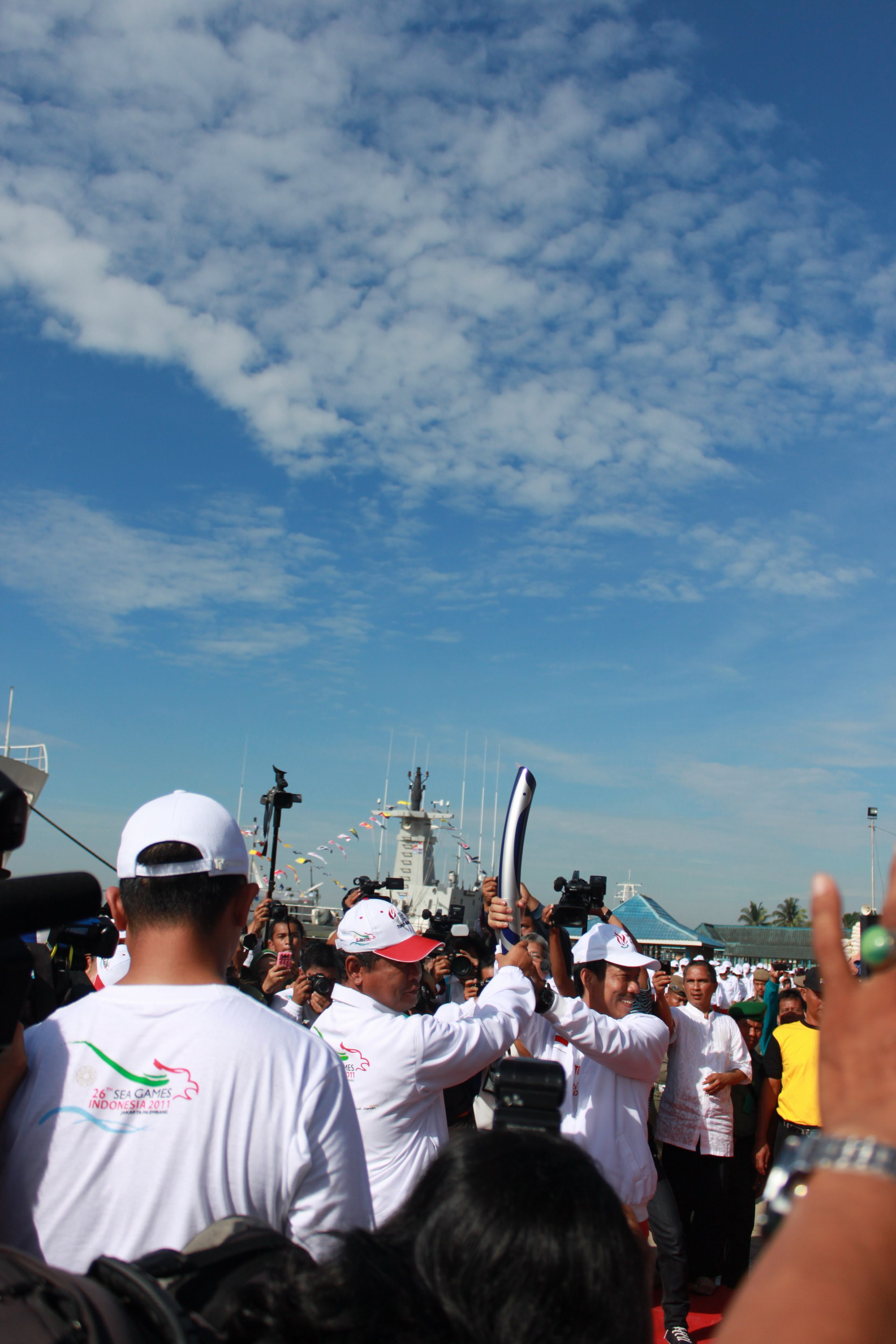 Dari jam lima pagi, saya dan beberapa anak-anak wongkito lainnya sudah bersiap-siap untuk menyambut kedatangan Obor SEA Games yang berasal dari Mrapen dan sudah dibawa berkeliling Indonesia. Dan ternyata kapal Tunas Wisesa 03 yang membawa obor baru tiba jam 7 pagi. Meskipun demikian, kami tetap menanti dengan sabar #eaaa. Saya sedang malas menulis panjang lebar. jadi saya akan membuatnya menjadi pictorial saja.