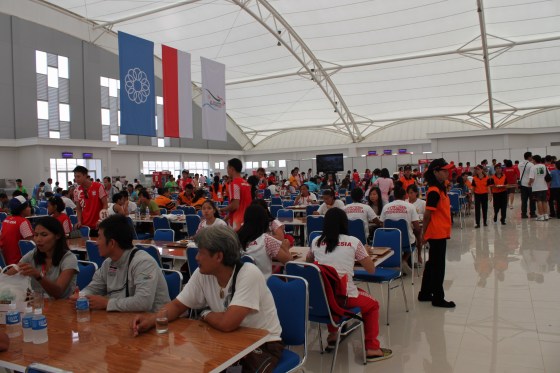 Beberapa hari yang lalu saya akhirnya bisa melongok juga ke dalam wisma atlet ini. tentu saja saya senang mengingat sebenarnya saya tidak punya ID Card untuk dapat dengan leluasa masuk ke sini. karena saya kebetulan menemani keluarga atlet dari Filipina lah akhirnya saya bisa masuk ke sini. Saya juga bisa masuk ke Dining Hall, kebetulan waktu itu sedang makan siang jadi sedang ramai-ramainya. saya makan gak di sana? ya jelas saja tidak. masih untung diperbolehkan masuk… Dan ternyata di dalam athlete village aka wisma atlet ini juga ada Indomaret yang buka 24 jam. Pocari Sweatnya gratis juga gratis loo, boleh ambil sesukanya #muree. Berikut adalah foto-foto yang sempat saya ambil selama di sana.