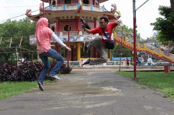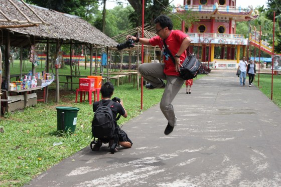 Begitu Nike mengabarkan kalau kami digratiskan ikutan jelajah musi ini, saya dengan suka cita mengosongkan jadwal kencan demi bisa ikutan program ini secara penuh. Apalagi begitu mendengar kalau hadiah pertamanya kamera Canon EOS 1100D. Tapi begitu sampai di sana dan melihat gear yang dibawa fotografer lain, saya langsung sadar diri dan memilih memaksa teman-teman saya untuk menjadi model #levitasihore dengan setting di Pulau Kemaro.