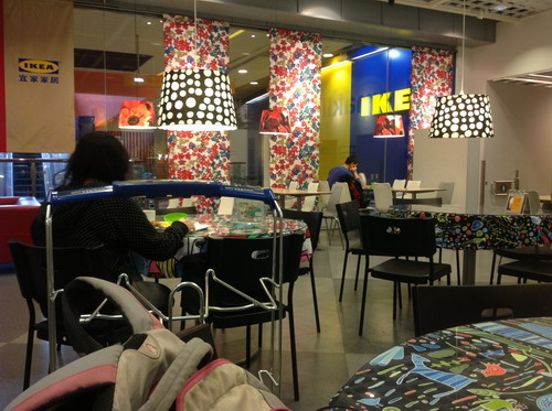 Tujuan pertama adalah ke IKEA Kowloon Bay yang terletak di Megabox. Mengandalkan google maps, kami memilih untuk naik bis 219X yang menuju ke Laguna City. Seperti biasa, ada fitur tersesat lagi dong. Setelah nyasar dan bertanya-tanya, akhirnya kami sampai juga di sini. Ternyata kami sampai di sini kepagian, IKEA sendiri ternyata belum buka tetapi restoran dan cafenya sudah dibuka. Jadi kami sarapan di sini dulu. Saya membeli paket makan pagi di ikea seharga HKD 19. Tempat makannya juga nyaman dan tersedia wifi gratisan. Pantas saja banyak yang sudah nongkrong di sini pagi-pagi. Kalau saja ikea ini ada di dekat rumah mungkin saya sudah nangkring di sini tiap pagi. Tapi seperti di ikea lain, di sini pelayannya terbatas, jadi kalau sudah makan ya diberesin sendiri saja. Kan mudah, tinggal menaruh nampan bekas makan kita beserta isinya ke tempat yang sudah ditentukan.