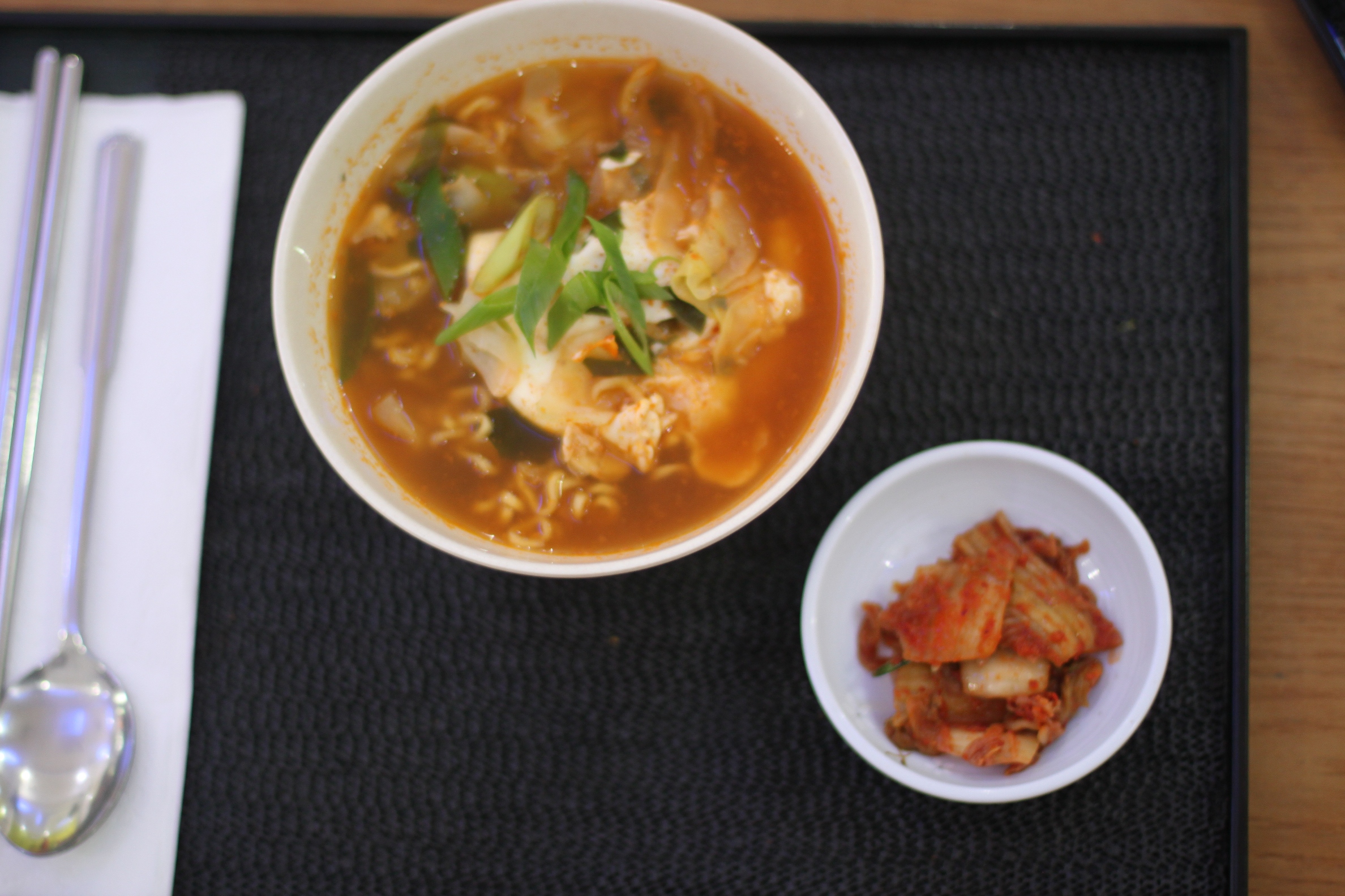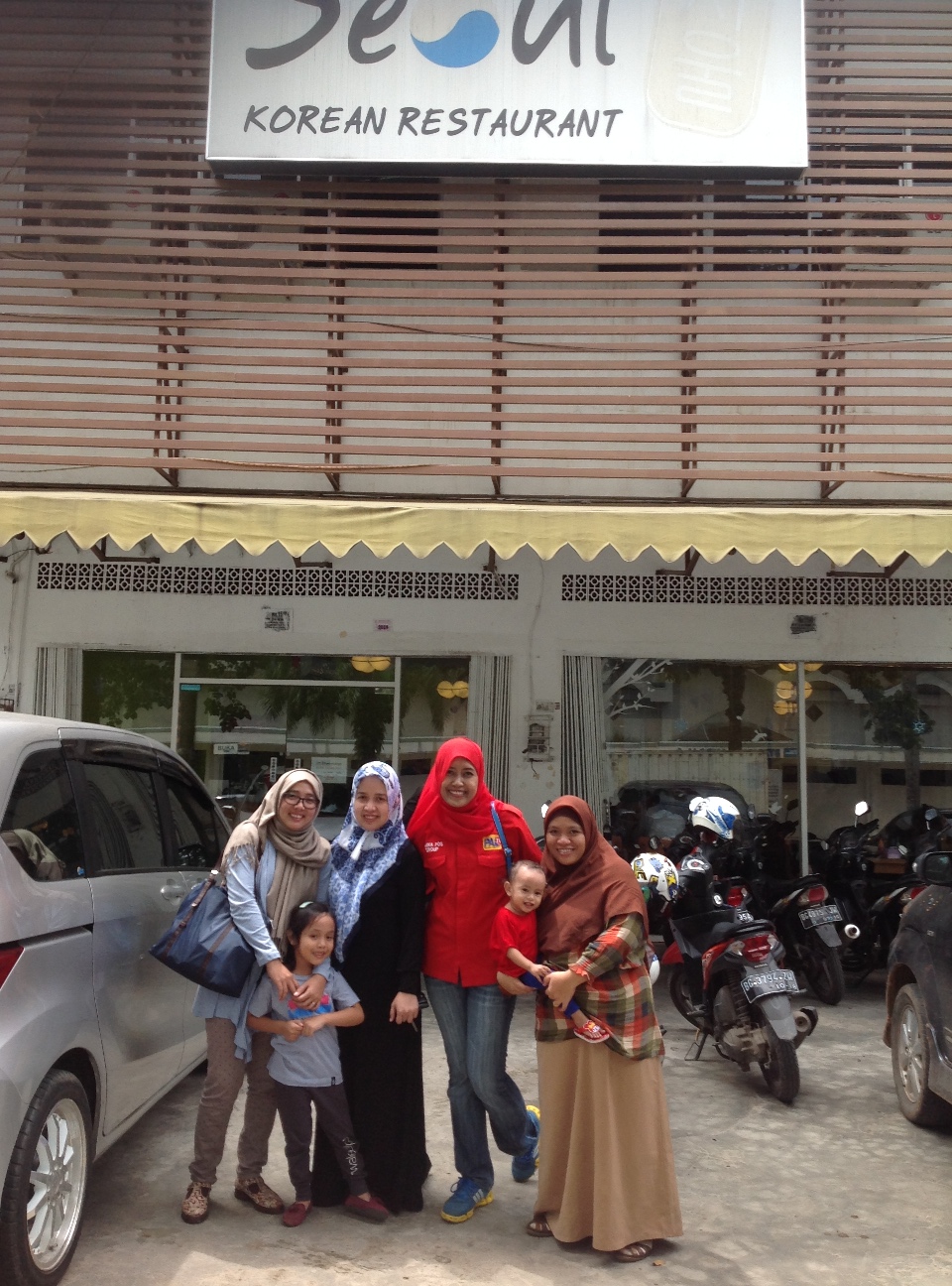 Meskipun demam Korea melanda Indonesia, saya tidak terlalu tertarik untuk mencoba kuliner Korea. Pengalaman pertama mencoba kuliner Korea adalah ketika saya ke Jogja dan menginap di salah satu penginapan. Berhubung katanya pemiliknya orang Korea, setiap pagi pada saat sarapan kimchi tidak pernah alpa di meja makan. Pada saat makan di sana kimchinya sesuai dengan lidah saya. Pernah juga mencoba kimchi dalam kemasan yang dijual di supermarket, ternyata tidak sesuai dengan lidah saya ditambah bonus masuk rumah sakit karena perut saya tidak kuat menahan asamnya kimchi kemasan itu. Selain itu, pengalaman kuliner saya terbatas pada makan indomie bulgogi ya anggap aja masuk dah dan ayam goreng bonchon dan four fingers. Dan seorang teman mengusulkan untuk mencoba resto korea di Palembang ini. Maka suatu siang yang agak panas, berbondong-bondonglah kami ke sana.