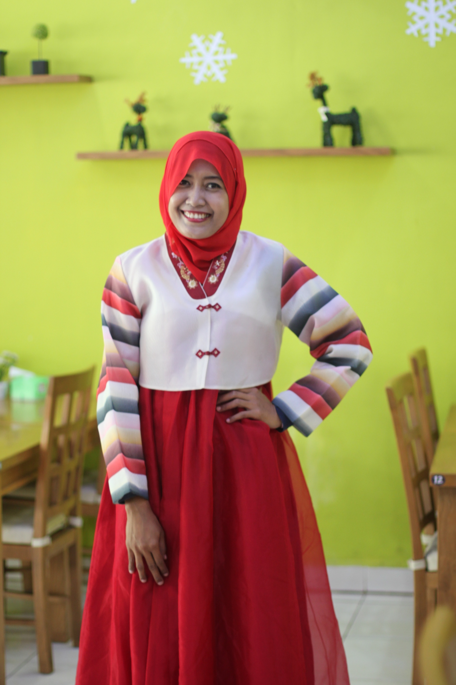 Selain itu, restoran ini juga menyediakan hanbok yang bisa dipakai untuk berfoto di sini. Hanbok dalam berbagai ukuran tersedia, termasuk juga hanbok berukuran kecil untuk anak-anak. Sayangnya anak teman saya sedang dalam fase ogah difoto, jadinya hanya seorang teman yang memperagakan hanbok.