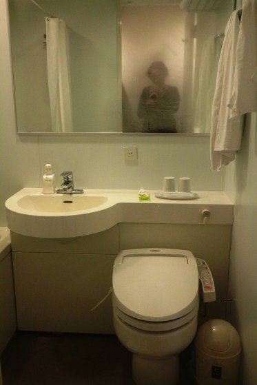 Tidak sulit mencari hotel ini, karena lokasinya berada persis di depan Super Hotel Ikebukuro yang pernah saya datangi satu tahun sebelumnya. Kamar hotelnya sama halnya dengan hotel kelas menengah di Jepang, sempit tapi efisien. Ukuran kamarnya hanya 4 x 4 meter, dan untuk menghemat pengeluaran, saya dan kakak saya memilih kamar dengan double bed bukannya twin bed. Untungnya ukuran badan kami berdua memungkinkan untuk berbagi ranjang tanpa merasa sempit. Untuk Sholat juga masih bisa.
