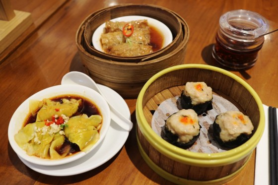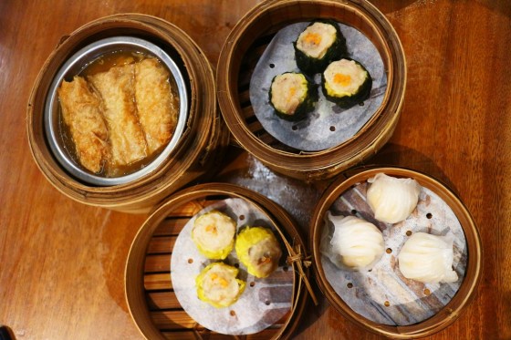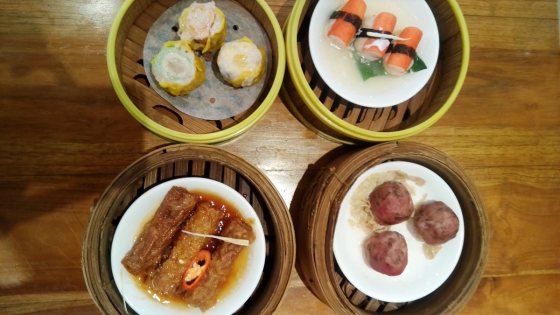 siewmai rumput laut, gao zi, lumpia ayam saus tiram