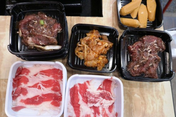 Dengan harga 99 ribu, pengunjung dapak menikmati Korean Barbeque all you can eat selama 90 menit. Tersedia beberapa pilihan daging sapi: yaitu korean beef bulgogi, korean spicy beef, madam lee’s blackpepper beef dan US Beef Belly; untuk ayam ada korean spicy chicken dan original chicken breast. Tersedia juga sosis. Selain itu, ada juga kimchi dan selada yang cocok digulung bersama daging yang sudah dipanggang. Sementara side dishnya terdiri dari nasi, bihun goreng, karage dan sup. Katanya side dish ini dirolling biar tidak bosan. Untuk air minum tersedia orang juice dan teh. Agak berbeda dengan Korean Barbeque yang menggunakan biasanya menggunakan arang. di sini menggunakan kompor dan pemanggang yang dipanasi dengan air. Jadi tidak perlu terlalu khawatir dengan asap yang sering menempel kalo kita makan bakar-bakaran.