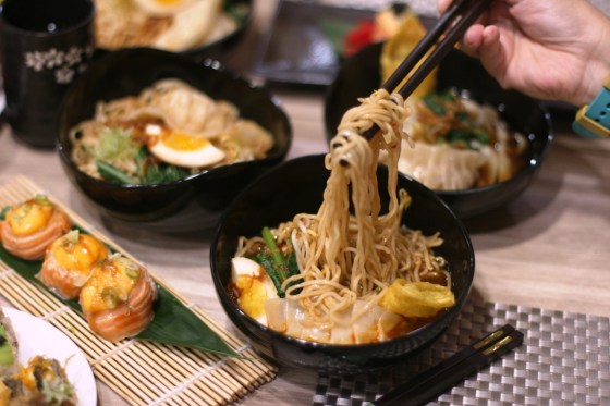 Saya meminta udon, sementara untuk sushinya tersedia berbagai macam sushi yang bisa dipilih tanpa ada batasan. Kuah udonnya enak, sementara udonnya juga kenyal dan enak dimakan. Udon dan ramennya homemade atau dibuat sendiri, jadi lebih terjamin rasa dan kebersihannya. Sementara sushinya terdiri dari 6 – 7 macam setiap harinya. Untuk sushinya, sushi langsung dibuat ketika stok di display berkurang. Jadi tidak perlu khawatir dengan kesegaran sushinya. Menu makan siang ini dihargai Rp. 99.000,++ atau setelah pajak menjadi 120 ribuan. Untuk udon atau ramen semangkok dan all you can eat sushi beserta free flow ocha, tentu saja sepadan.