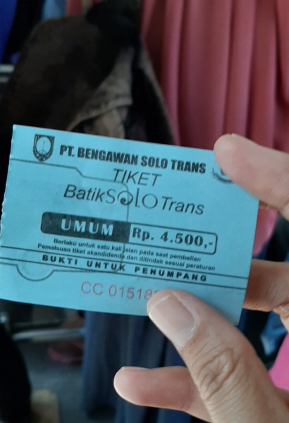 Tidak terlalu jauh dari Pop! Hotel terdapat halte BST, jam 8 pagi saya sudah menunggu bus BST. Ada 2 jalur yang beroperasi melewati Halte RS Kasih Ibu ini, jadi sebelum naik bisa ditanyakan apakah melewati tujuan kita atau tidak. Saya akan turun di pasar Triwindu, jadi disarankan naik jurusan Palur – Adi Sumarmo. Tarif naik bus ini adalah 4.500. Sayangnya beberapa kali saya naik bus ini, petugasnya tidak memberikan tiket. Mungkin beda kebijakan kali ya, karena beberapa kali juga saya diberi tiket oleh petugasnya.